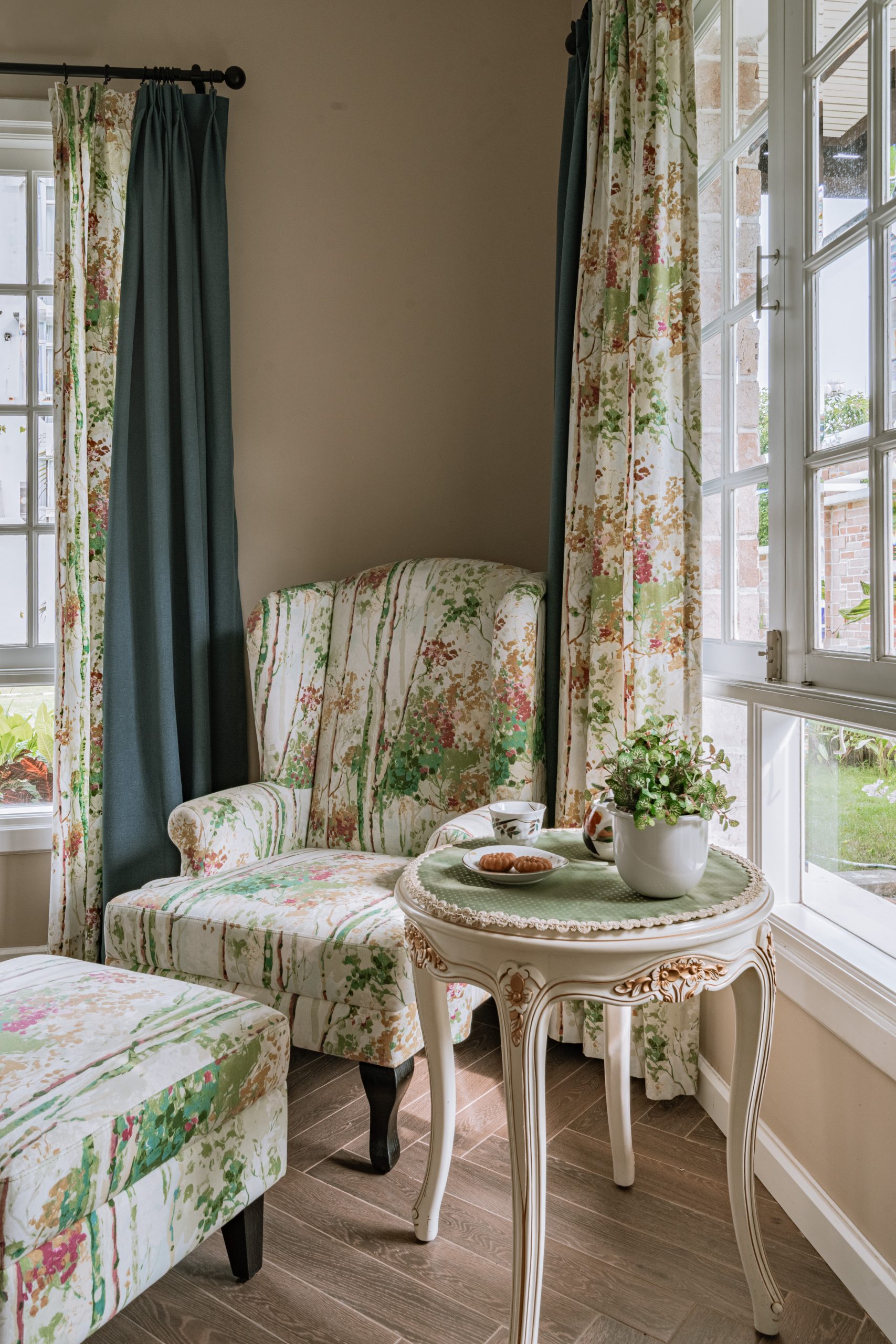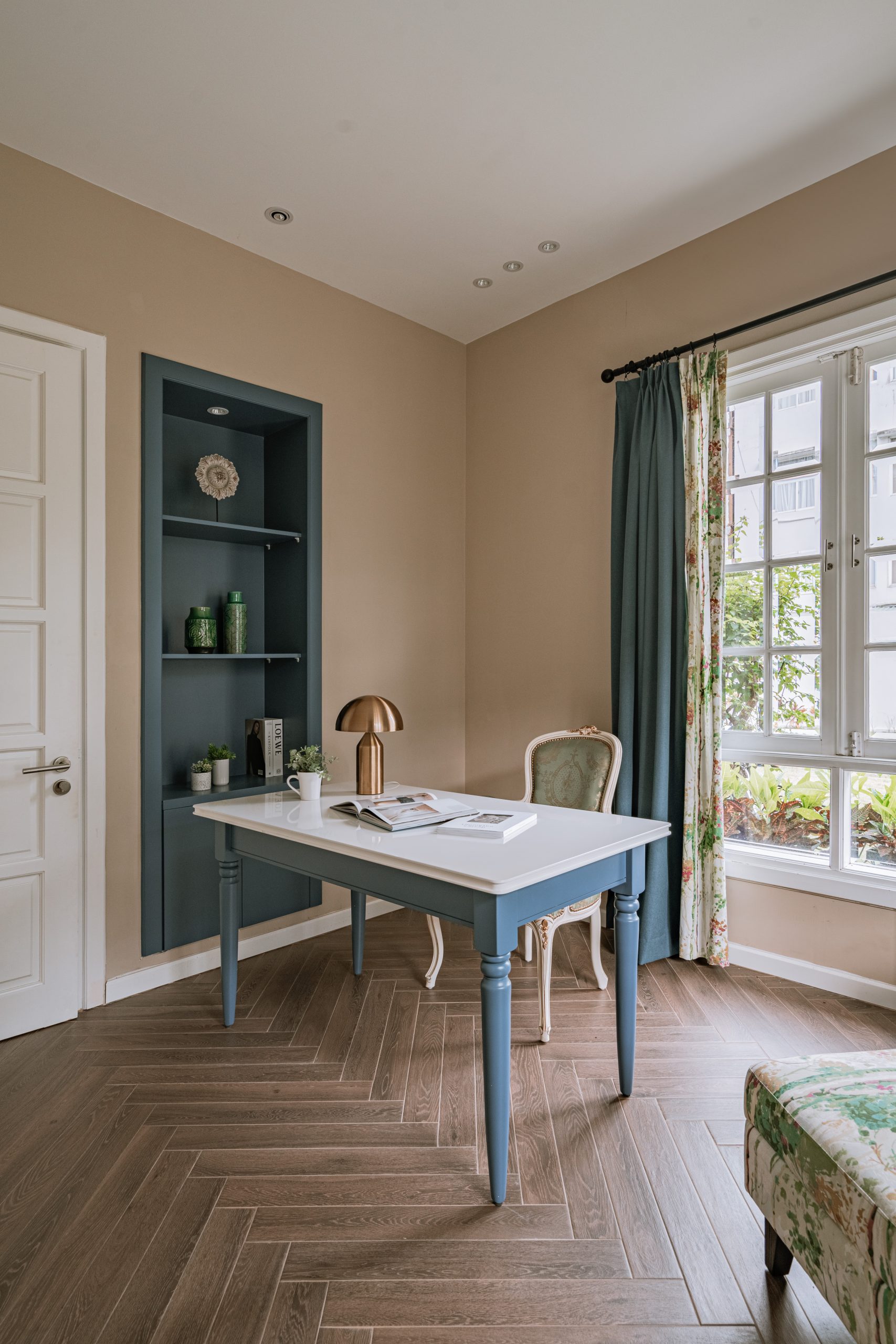Như tại phòng làm việc, ARTIUS kết hợp ánh sáng cùng các vật liệu sang trọng và thích hợp tạo ra không gian yêu thích cho gia chủ. Ngoài bàn làm việc gọn gàng, đặt gần cửa sổ để tận dụng ánh sáng tự nhiên phòng còn có góc đọc sách êm ái với ghế bọc vải hoa và bàn trà nhỏ. Đây không chỉ là nơi làm việc mà còn là không gian dành cho những khoảng lặng, nơi chủ nhân có thể làm việc, đọc sách hay thưởng thức một tách trà trong ánh hoàng hôn dần buông.